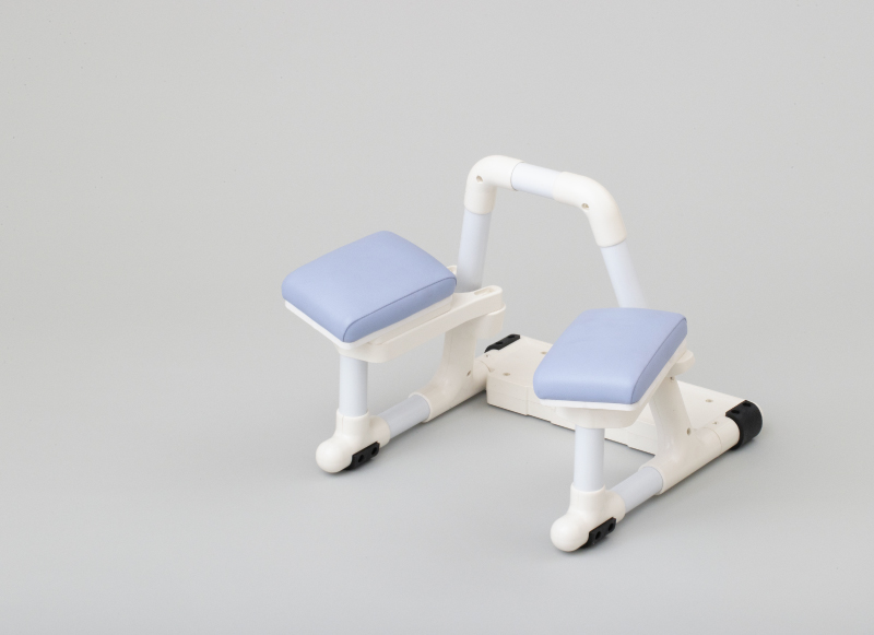 グリップバーをつかむことが困難な場合は、アームレストは使用せず、水平バーをつかみます。甲や手首を水平バーに乗せるなど、しっかりつかまなくても、姿勢が保持できていれば問題ありません。